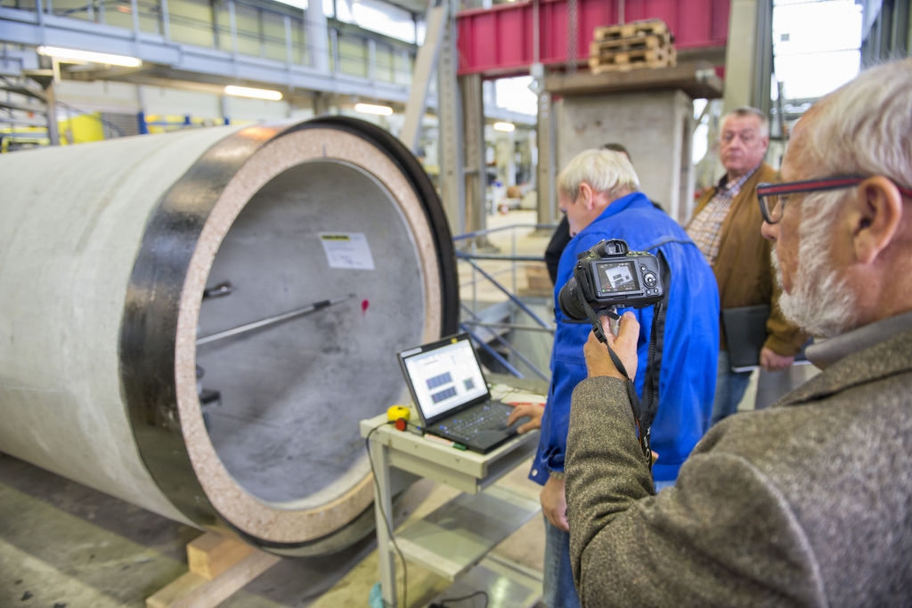Und nicht nur die Festigkeit des Rohrs steht im Vordergrund: Denn Stahlbetonrohren kann man nicht in die Wand hineinschauen – es sei denn, man macht sie kaputt. Dann lässt sich genau überprüfen, wie viel Stahl verbaut wurde und wo er liegt.