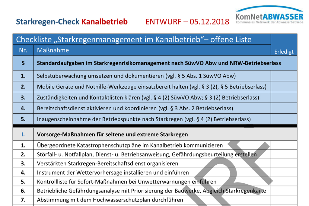 - Checkliste „Starkregenvorsorge in meinem Kanalbetrieb“