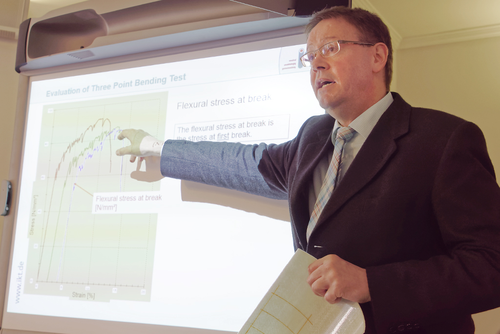 Das IKT ist mit seinem Geschäftsführer Dipl.-Ök. Roland W. Waniek und Dipl.-Ing. Dieter Homann, dem Leiter der IKT-Prüfstelle, vertreten. Waniek präsentiert die Ergebnisse des IKT-Liner­Reports 2015, in dem auch britische Sanierungs­unter­nehmen vertreten sind. Homann erläutert, wie Bau­stellen­proben entnommen werden, wie sie geprüft werden und was man aus den Prüf­ergeb­nissen heraus­lesen kann.