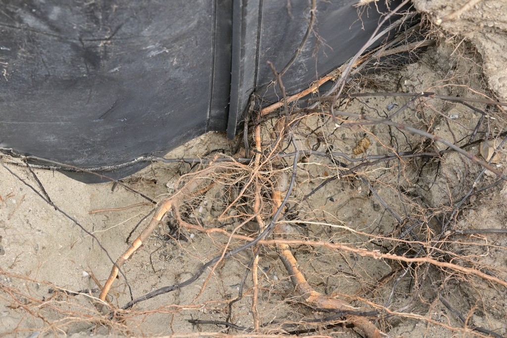 Allein optisch gab es dabei schon einige unerwartete Überraschungen: Selbst dicke Wurzeln verzweigten wie ein altrömischer Dreizack, wenn sie auf Widerstand stießen. Sie folgten dabei dem relativ lockeren Bodenraum um die verlegten Abwasserrohre. Sie suchten ihren Weg und fanden ihn. Die eingebauten Hindernisse umgingen sie – auf den ersten Blick erfolgreich.