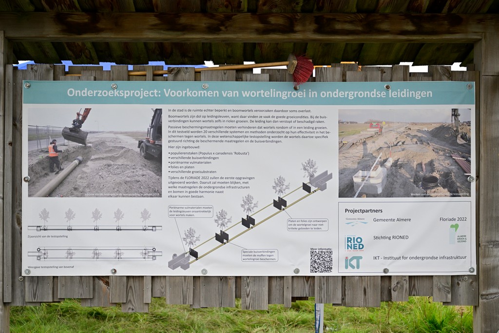 Der IKT-Wurzelversuchsstand steht in einem Neubaugebiet in der Stadt Almere, nahe Amsterdam. Er wurde im Winter 2018/2019 angelegt und jetzt abgebaut.