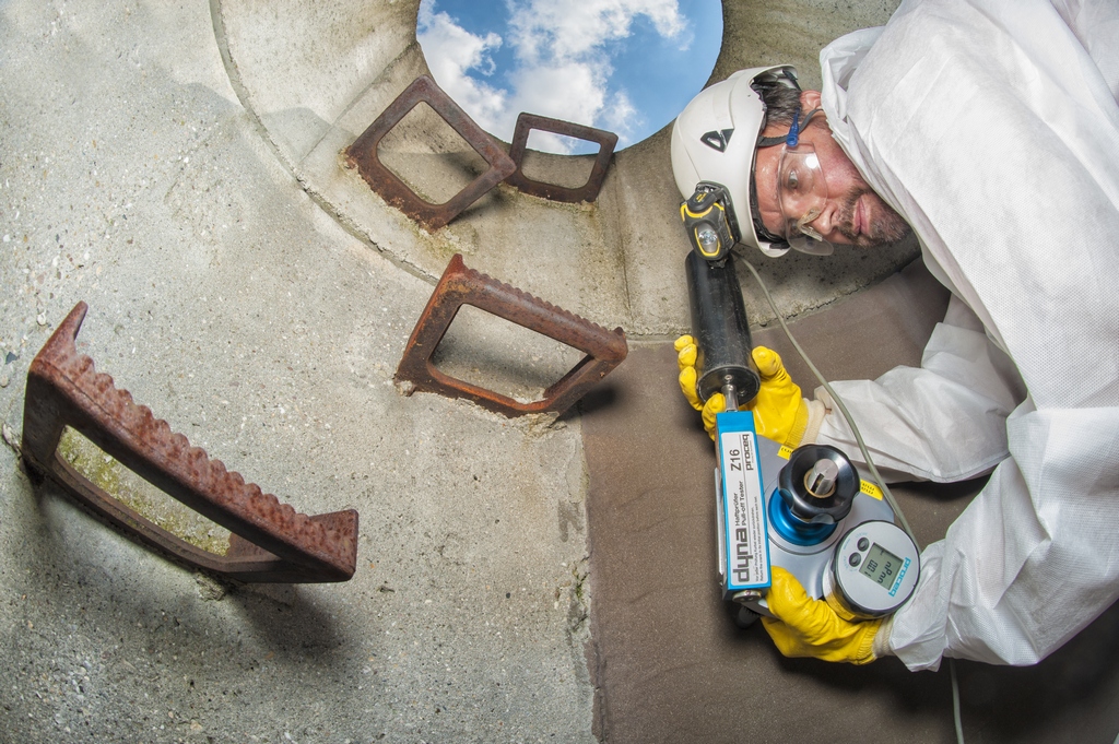 - IKT prüft insitu die Haftzugfestigkeit einer Schachtbeschichtung