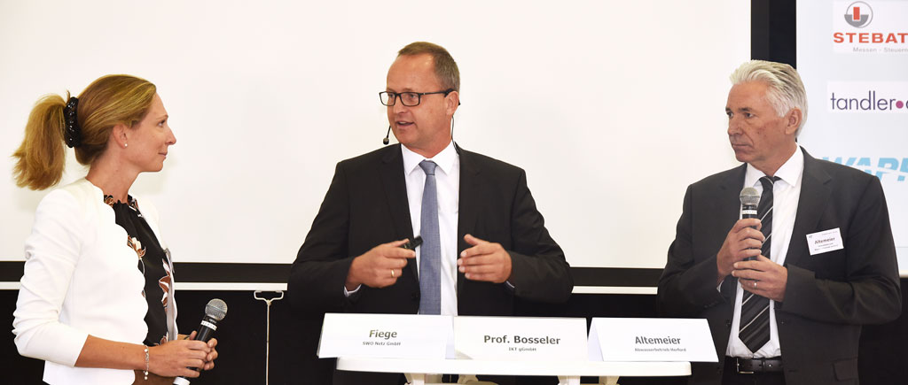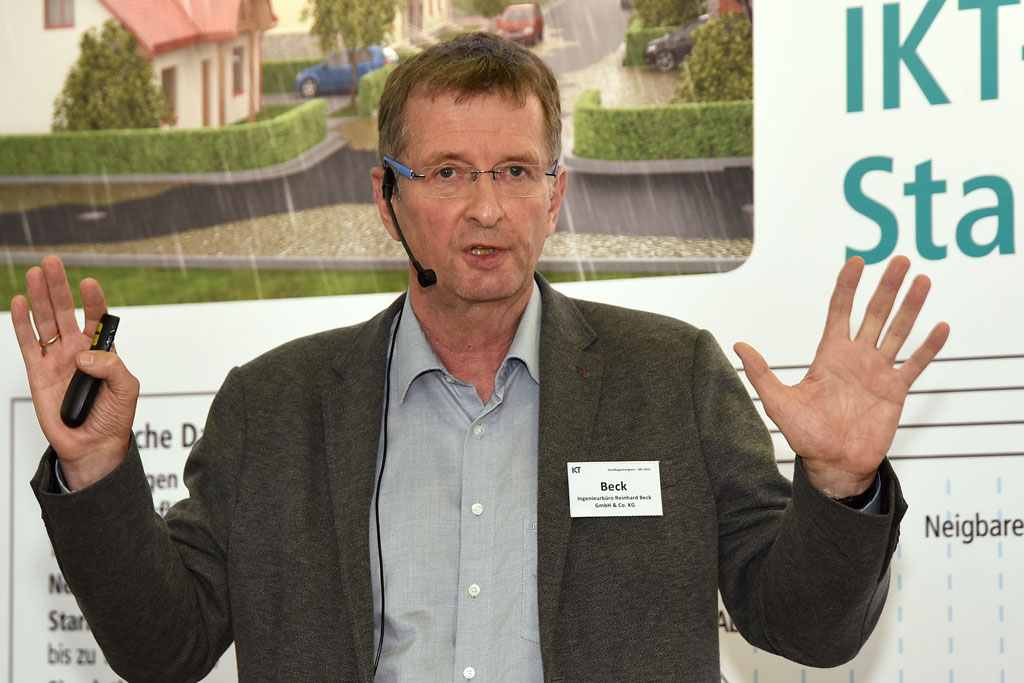 Welche Maßnahmen können Kommunen helfen, die negativen Auswirkungen von Starkregen zu verringern? Welche Ansätze und Konzepte gibt es? Und welche Erfahrungen haben Netzbetreiber bereits gemacht? „Wenn der Starkregen ein Pfeil wäre, wie könnten wir ihm die Spitze abbrechen?“, formuliert es IKT-Geschäftsführer Roland W. Waniek. „Dann tut es zwar immer noch weh, wenn man getroffen wird, aber die schlimmsten Verletzungen werden vermieden.“