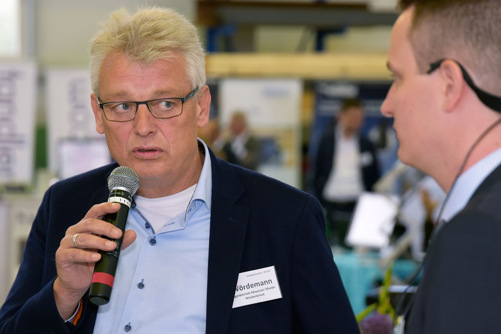 Wie sich Abwasserbetriebe, Kommunen und Ingenieurbüros auf dem neuen Terrain der Starkregenvorsorge bewegen, wurde in verschiedenen Konstellationen am Round Table diskutiert. Wie bereiten sich Kommunen auf Starkregen vor? Welchen Beitrag können Ingenieurbüros leisten? Welche Erfahrungen wurden gesammelt? Was machen große Städte? Wie gehen kleine Gemeinden das Thema an? Wie werden andere Behörden eingebunden und Bürger informiert? Wie helfen Starkregengefahrenkarten bei der Vorsorge? Und natürlich: Soll man sie veröffentlichen oder nicht?
