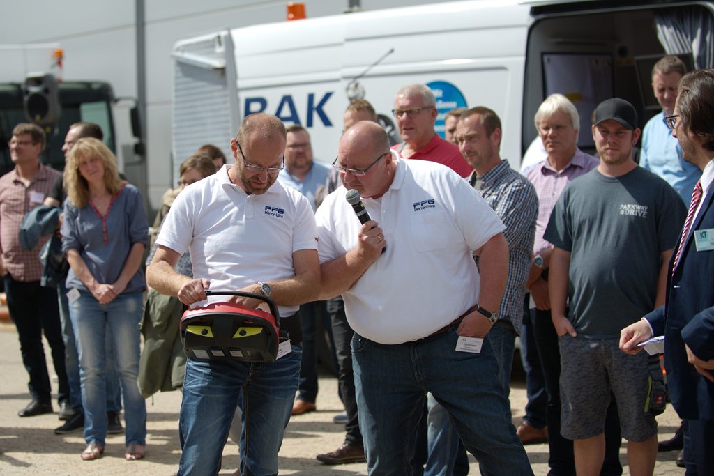 Aussteller und Teilnehmer vor Spülfahrzeug