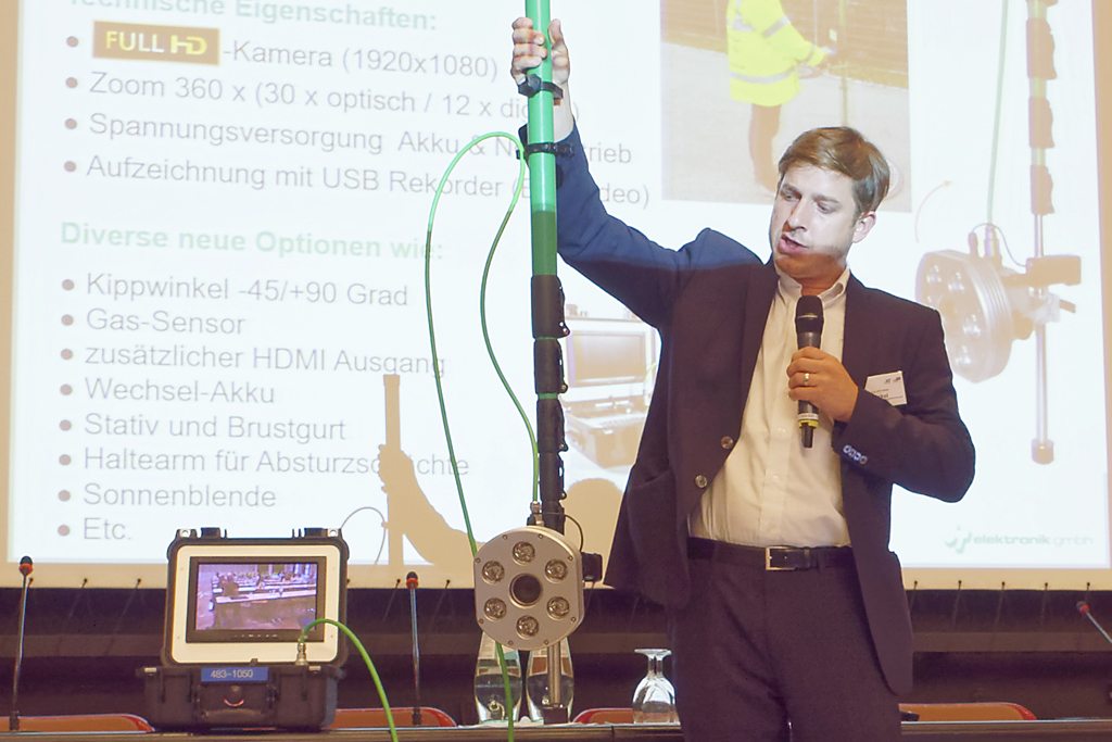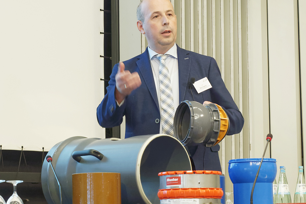 Weitere Vorträge befassten sich mit den rechtlichen Aspekten rund um die Grundstücksentwässerung, mit der Sanierung von privaten Abwasseranlagen und der Sicht der Eigentümer auf das Thema. Auch in diesem Jahr wurde das Vortragsprogramm wieder von einer abwechslungsreichen Fachausstellung begleitet. Einige Aussteller präsentierten ihre Produkte dem Publikum auch auf der großen Bühne.