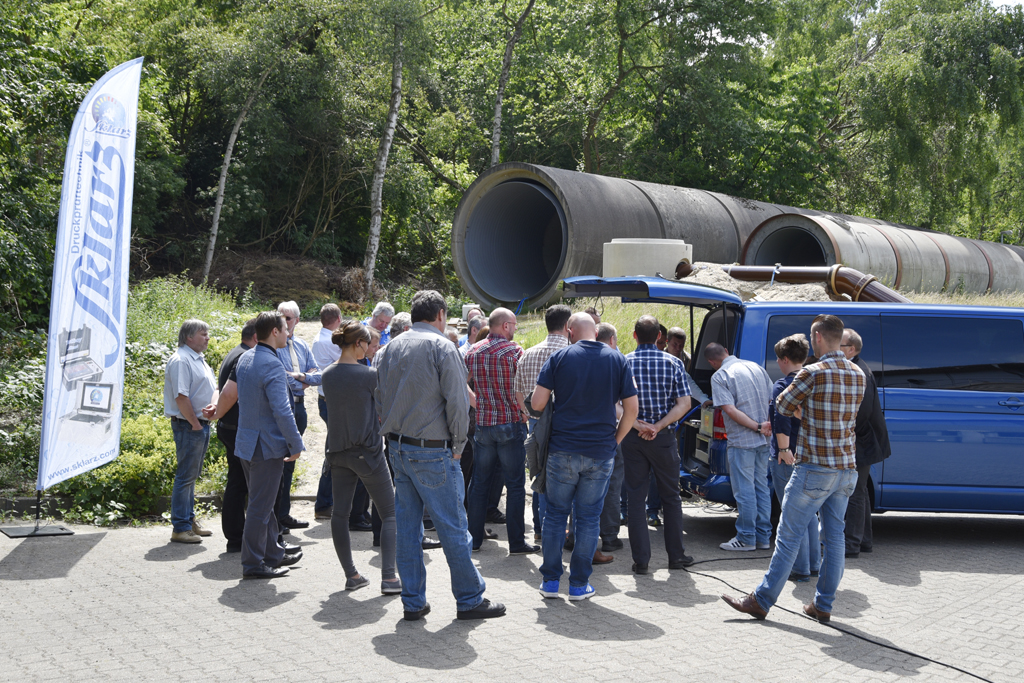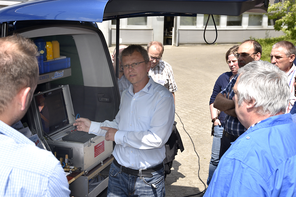 Technik im Einsatz: Dichtheitsprüfung an der IKT-Teststrecke (im Bild: Sören Sklarz, Sklarz Umwelttechnik)