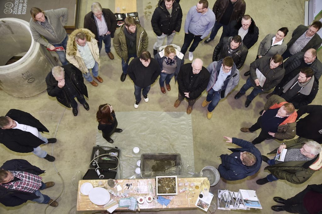 Es blieb dabei aber nicht bei trockener Theorie – immer wieder wurde der Bezug zur Praxis hergestellt. Beispielhafte Praxisvorführungen relevanter Produkte und Verfahren zu Reparatur und Sanierung von Schächten lockerten das Programm auf und veranschaulichten die heutigen Möglichkeiten der Schachtsanierung.