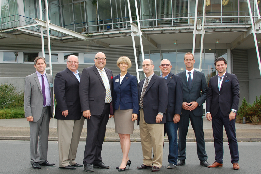 Die Gäste von der IRWA, International Right of Way Association, aus den USA sind bereits einen Tag vor der Konferenz angereist. Prof. Dr.-Ing. Bert Bosseler, Wissenschaftlicher Leiter des IKT, begrüßte sie im IKT und zeigte ihnen das PRüflabor, die Versuchshalle und das IKT-Gelände.