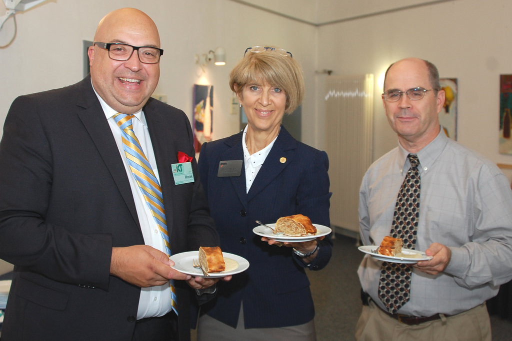 - Prof. Dr.-Ing. Bert Bosseler (links) zeigt Mark Rieck (Mitte) und Bill Busch, IRWA, das MAC-System.