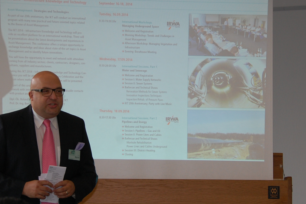 Das Symposium am zweiten und dritten Tag griff internationale Trends des Asset Managements auf und verschaffte den Teilnehmern einen aktuellen Überblick über verschiedene unterirdische Infrastrukturen (Assets). Besonders spannend wurde es in der Session „Power Lines and Cables“ mit dem Thema „Breitbandkabel in Abwasserleitungen“, findet Konferenzleiter Dr.-Ing. Sissis Kamarianakis vom IKT. Hier trafen verschiedene Positionen aufeinander, technische Aspekte trafen auf rechtliche Rahmenbedingungen. Es wurde lebhaft diskutiert. Ein Thema, das auch in Zukunft noch für Gesprächsstoff sorgen wird.