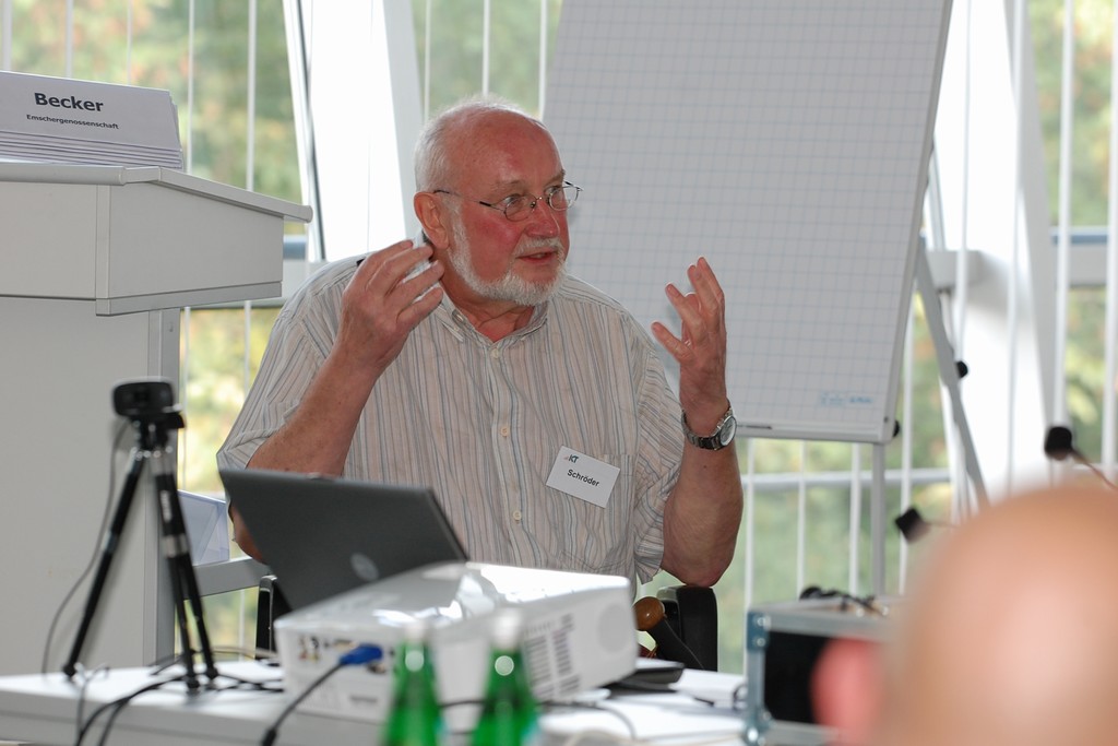 Bill Rose und Vic Bianes von der San Diego County Water Authority mussten für ihren Vortrag besonders früh aus den Federn. Denn sie hielten ihn von San Diego aus – Ortszeit 7 Uhr morgens. Ihre Präsentation und ein Webcam-Bild aus ihrem Konferenzraum wurden live auf die Leinwand im IKT übertragen. Auch in die andere Richtung waren die Leitungen offen, Nachfragen und Diskussionen möglich.International Symposium
