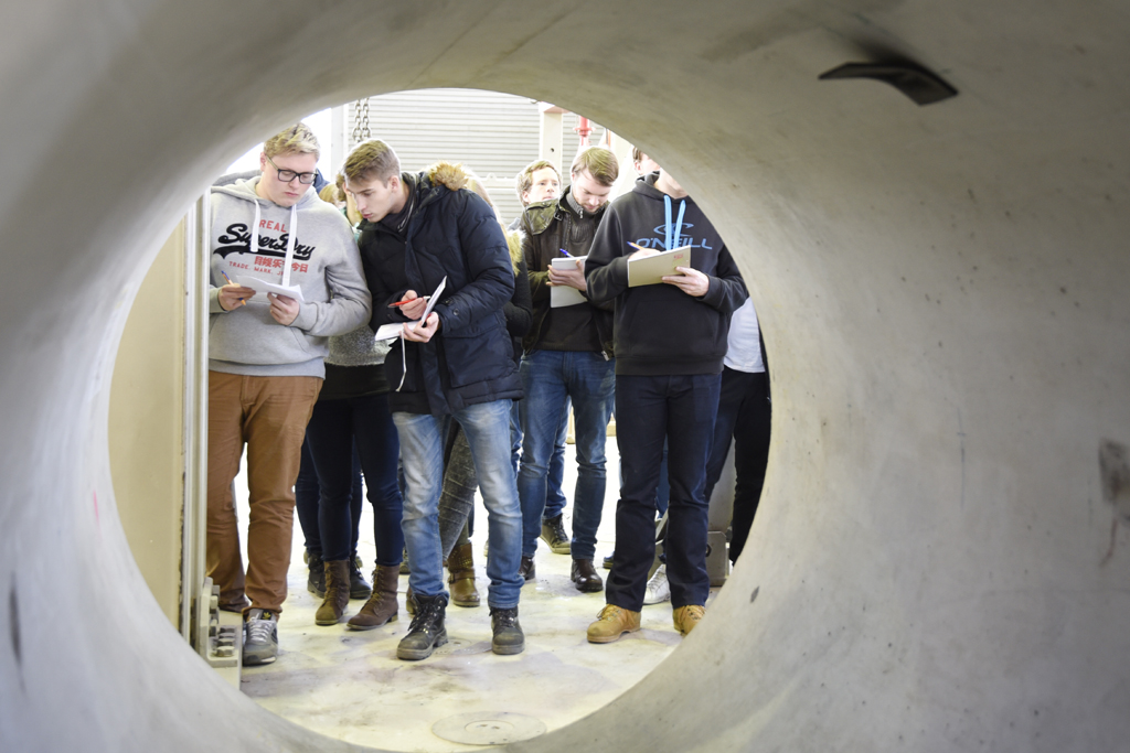 Das IKT und seine Prüfstellen bieten ein großes Spektrum an verschiedenen Versuchen und Prüfungen rund um das Thema Kanalisation und Bauprodukte an. Marcel Goerke, M.Sc. führte die Studenten durch die Versuchshalle, zeigte die Versuchseinrichtungen und erläuterte aktuelle Versuche und Prüfungen. Dirk Carstens, Mitarbeiter im IKT-Labor, demonstrierte die Dichtheitsprüfung an Schlauchlinerproben.Abschlussarbeiten und Studentenjobs am IKT