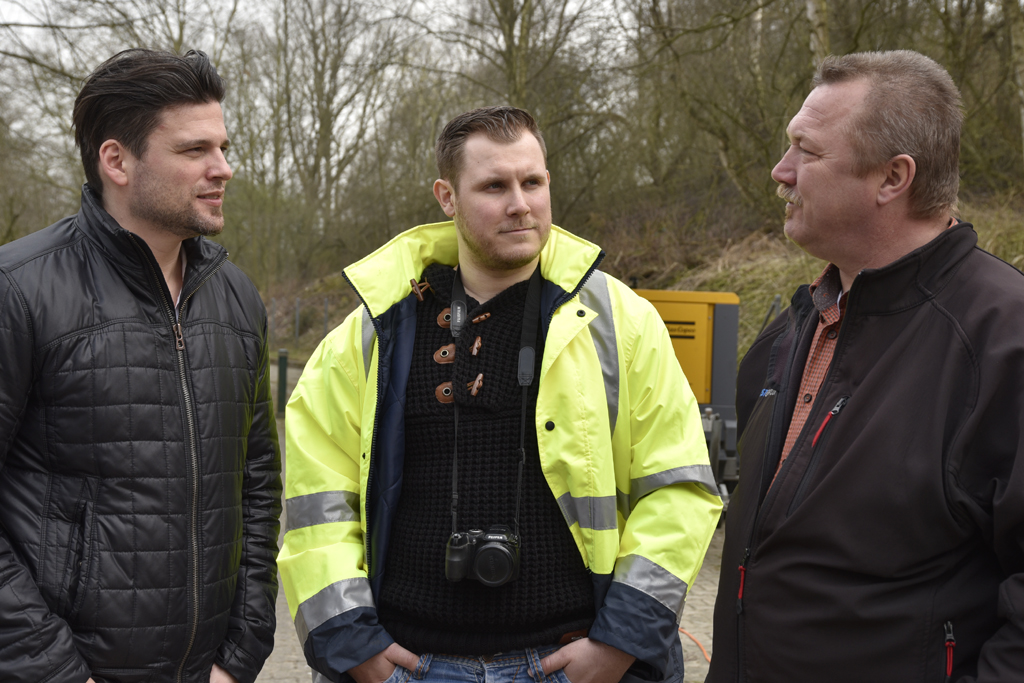 - Im Gespräch (v.l.n.r.): Projektleiter Dr.-Ing. Sissis Kamarianakis, IKT-Wissenschaftler Stefan Bretz, B.Eng. und Bauleiter Torsten Ringvet von FAST Opticom