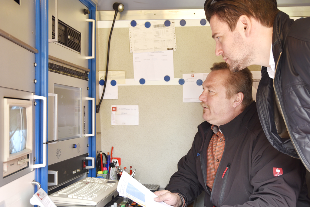 - Torsten Ringvet erläutert Dr. Sissis Kamarianakis das Vorgehen beim Verlegen des Breitbandkabels.