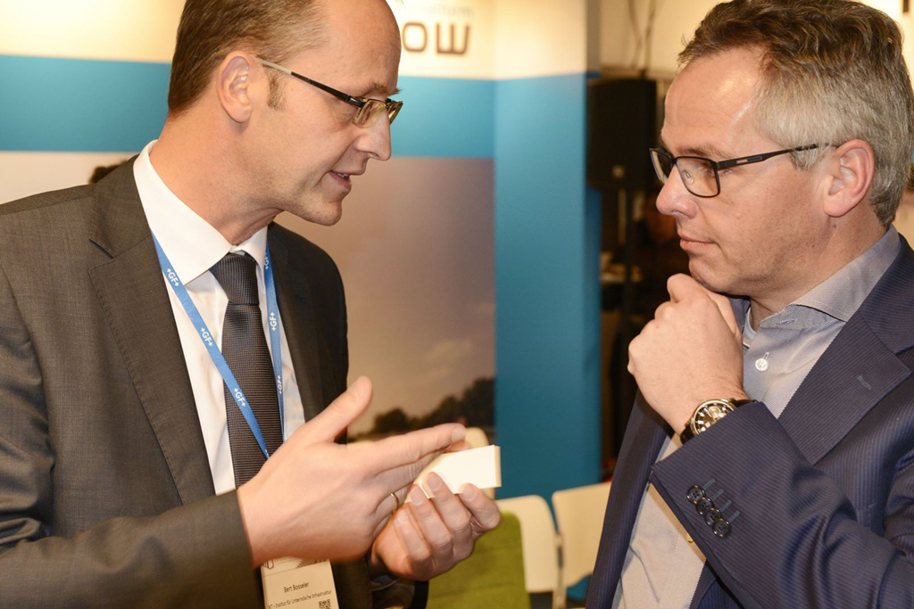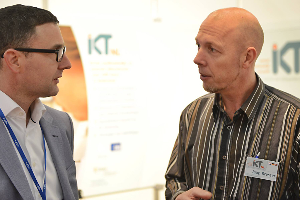 - IKT Nederland-Mitarbeiter Jaap Bresser (r.) im Gespräch am IKT-Stand