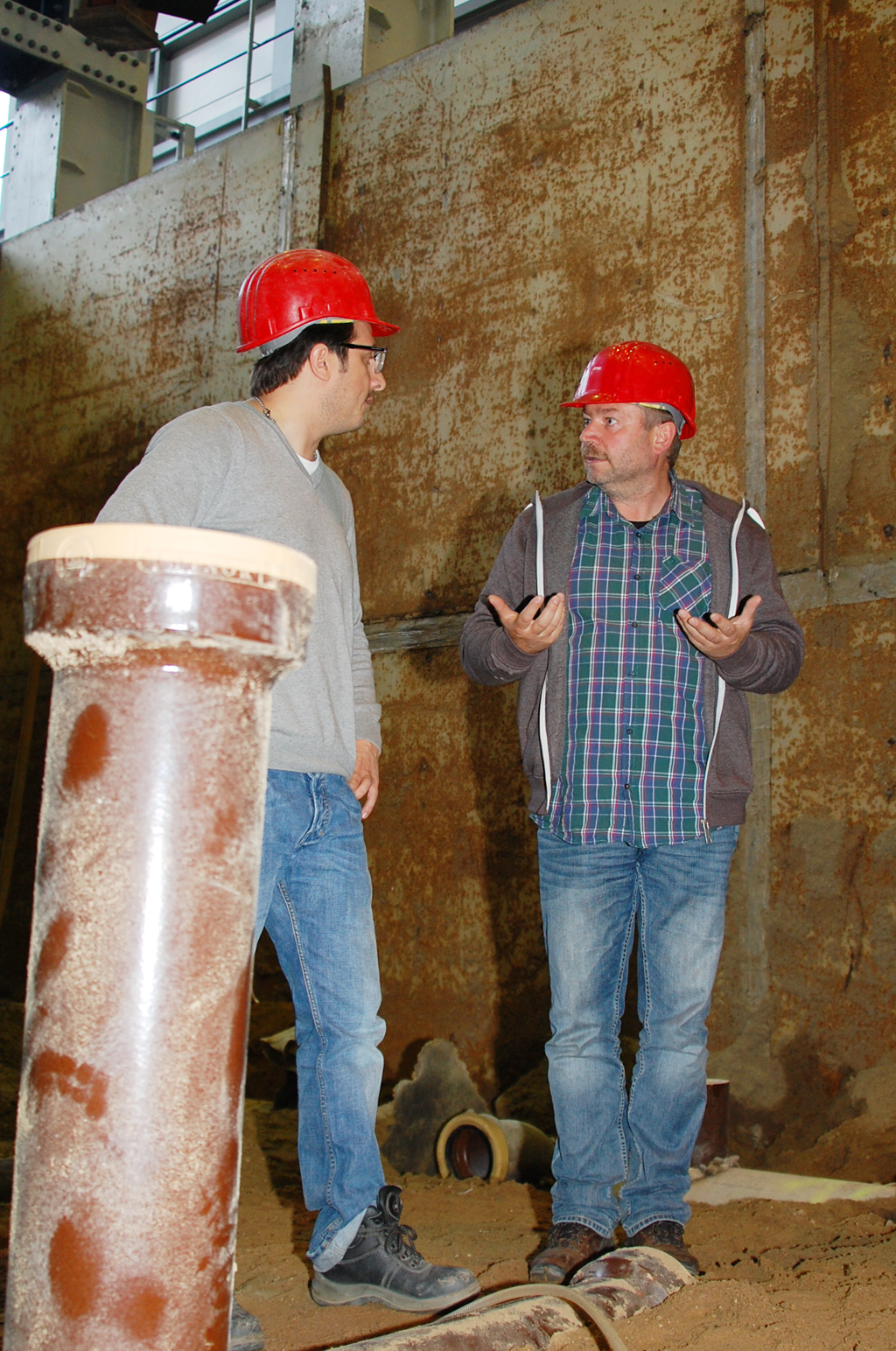 Kurzcheck: Mitglieder des Lenkungskreises und Warentestleiter Serdar Ulutaş begutachten die Sanierungsresultate.