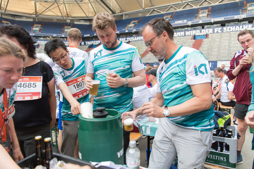 In Instituts-Trikots: Das IKT-Team beim großen Firmenlauf auf der Veltins-Arena in Gelsenkirchen (Foto: Jenny Musall)