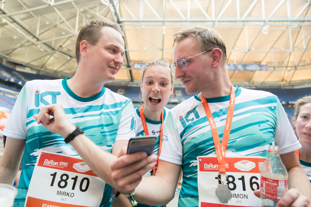 Nach dem Lauf: Glückliche und fröhliche Gesichter mitten in der Schalker Arena