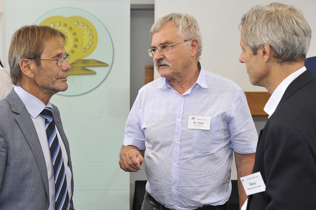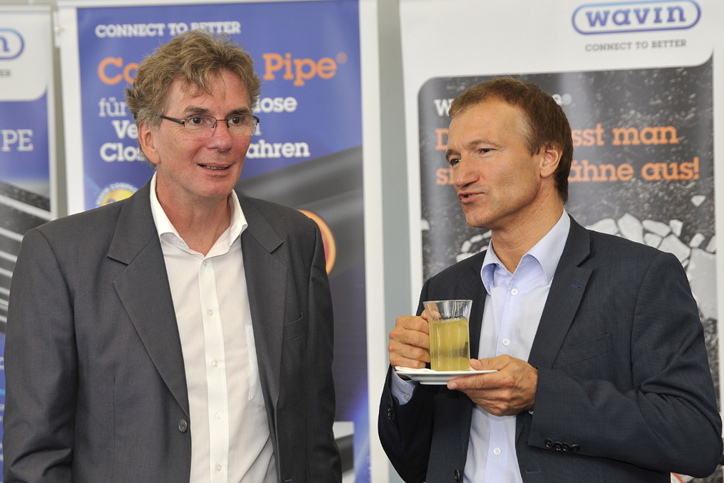 - Artur Graf zu Eulenburg (Chefredakteur B_I umweltbau, links) und Michael Hippe (Franz Fischer Ingenieurbüro) im Gespräch