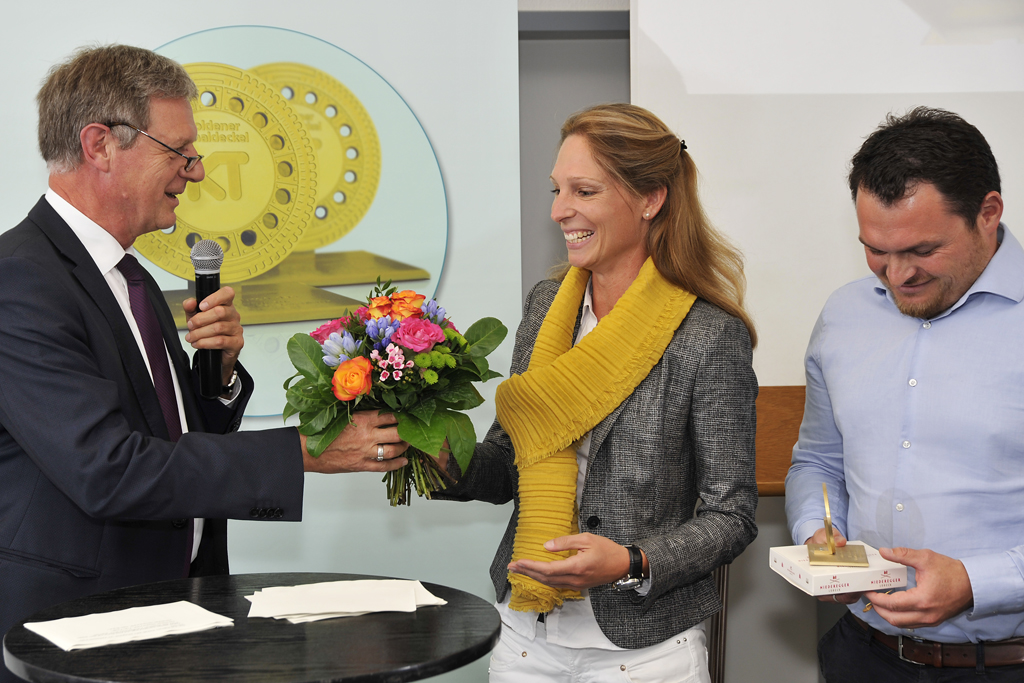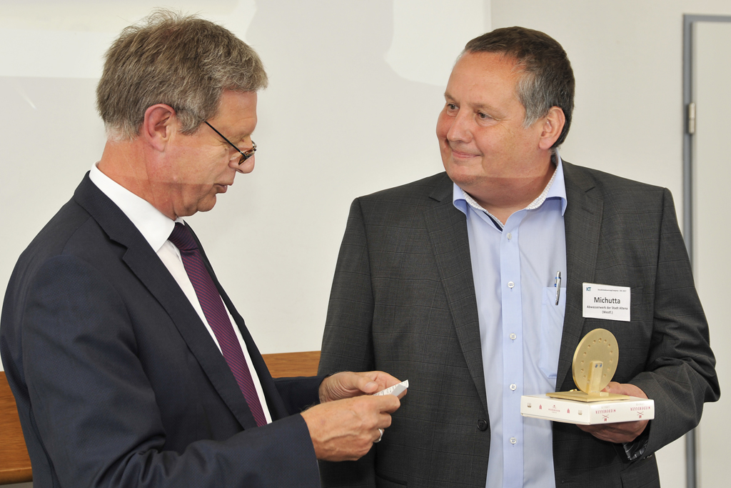 - Jörg Michutta (Stadt Altena, rechts) erhält den zweiten Platz des Goldenen Kanaldeckels 2017.