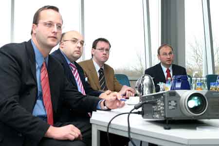 Stellten der bi-UmweltBau exklusiv die Ergebnisse des Forschungsvorhabens vor: Dr. Bert Bosseler, Roland W. Waniek, Dieter Homann und Marco Schlüter (v.l). |