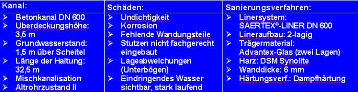 Ermöglicht wurde diese Vorgehensweise durch die Unterstützung der Stadt Dortmund, die einen sanierungsbedürftigen Betonkanal zur Verfügung stellt. Trotz der mit DN 600 relativ großen Nennweite dieser Haltung in der Merklinder Straße und der festgestellten Unterbögen in einigen Haltungsbereichen, entschied sich die SAERTEX multiCom in diesem Fall für eine Dampfhärtung. Lageabweichungen in Form von Unterbögen sind bei der Dampfhärtung von besonderer Bedeutung. Hier sammelt sich Kondenswasser in der Sohle, das bei nicht fachgerechter Vorgehensweise zu einer unvollständigen Aushärtung des Liners führt. Insgesamt handelt es sich also um eine anspruchsvolle Sanierungsaufgabe, die von der beauftragten Hans Brochier GmbH & Co., Niederlassung Dortmund, bewältigt werden muss.