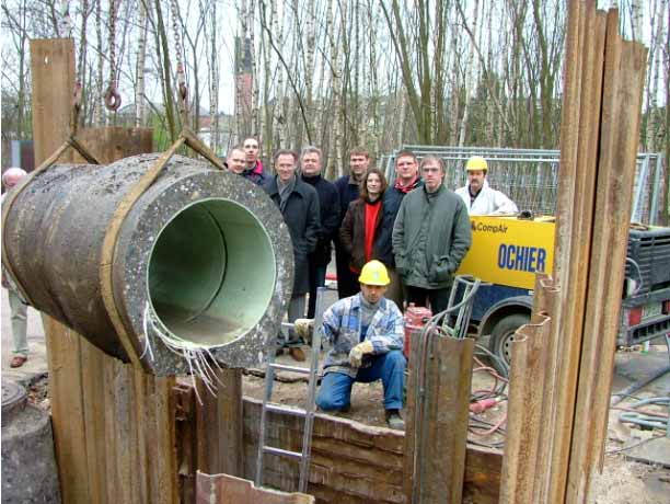 Standard-Prüfungen läßt jeder machen, sich aber freiwillig einem Insitu-Langzeit-Test des IKT zu unterziehen, dazu gehört schon was: Genau dies tut jetzt die SAERTEX multiCom. Sie baut ihren Gelege-konstruierten Liner in einen Dortmunder Kanal ein und läßt ihn fünf lange Jahre vom IKT auf Herz und Nieren prüfen. Von nun an werden halbjährlich Linerproben für Laboranalysen, Werkstoff- und Dichtheitsprüfungen herausgeschnitten. Resultate werden fortlaufend protokolliert und regelmäßig veröffentlicht. Begonnen hat das Ganze mit dem spektakulären Ausbau eines sanierten Kanalabschnitts.
