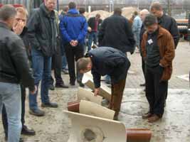 Prüfungen und Bewertung Im Vordergrund der IKT-Warentests steht die intensive Zusammenarbeit zwischen Forschung und Praxis. Daher werden die IKT-Warentests basierend auf den Praxiserfahrungen und den Qualitätsanforderungen der beteiligten Netzbetreiber entwickelt. Der zentrale Aspekt ist die Prüfung der Eignung von Produkten bzw. Verfahren für den Praxis-Einsatz und unter Betriebsbedingungen, z.B. Hochdruckspülung. Der IKT-Warentest "Reparaturverfahren für Anschlussstutzen" wurde intensiv durch die 26 Kanalnetzbetreiber begleitet. Insgesamt fanden sieben Arbeitssitzungen statt, in denen die gesamten Testinhalte, vom Untersuchungsprogramm bis zur Bewertung, abgestimmt wurden. Drei Schwerpunkte standen im Vordergrund: Qualitätssicherung der Verfahrensanbieter, Systemprüfungen und Baustellen-Untersuchungen. |