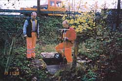 Auch in schwierigem Gelände einsetzbar Die Eingemeindung überwiegend ländlicher Kommunen zu Bielefeld machte Ende der 70er Jahre den Bau langer Verbindungssammler notwendig. Schon sehr bald zeigte sich, dass die Reinigung dieser Sammler mit Hochdruckspülfahrzeugen außerordentliche Schwierigkeiten bereitete (Bild 2). Sammler und Schächte mussten zwangsläufig parallel zu Bachläufen oder in landwirtschaftlich genutzten, privaten Ackerflächen verlegt werden. Die schweren Hochdruckspüler blieben aber regelmäßig in dem unwegsamen Gelände stecken. |