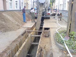 • Das Spülwasser zur Reinigung des Fahrmischers sollte nicht in den frisch verfüllten Rohrgraben abgelassen werden. Die dadurch verursachte Verdünnung des Materials trägt zur Rissbildung bei.