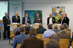Fachleute aus verschiedenen Kommunen und dem NRW-Umweltministerium machen den Handlungsbedarf in der Kanalisation zum Thema. Die IKT-Forscher stellten aktuelle Forschungsergebnisse vor. Zum Thema „Qualität in der Kanalsanierung“ führten interessante Gäste ein moderiertes Streitgespräch, das allen Interessen eine Stimme gibt. Motto: „Hart, aber fair“. Begleitend fand eine Fachausstellung im IKT-Gebäude statt, auf der 26 unterschiedliche Hersteller und Sanierungsfirmen ihre neuesten Produkte und aktuelle Entwicklungen präsentierten. | |||||||||